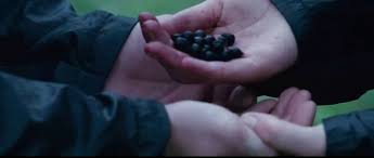 Looking at the movie as a “hero’s journey” for Katniss, we recognize this moment as the characteristic final test of worthiness that all heroes must pass. So, we are gratified when gives Peeta a handful of poisonous nightlock berries and suggests that they eat them together as a final act of defiance against the authoritarian state. We expected this. We know this will be the moment of the hero’s ultimate triumph. (Even if she dies.)